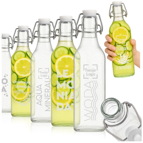 Szklana Butelka Kwadratowa 1000 ml Z GRAWEREM z zamknięciem mechanicznym