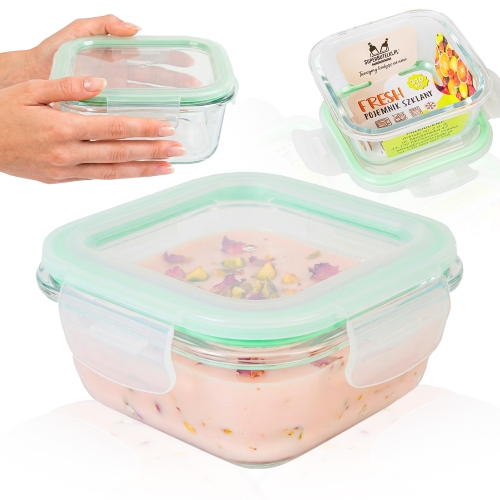 Hermetyczny pojemnik szklany kwadratowy 310 ml do przechowywania żywności