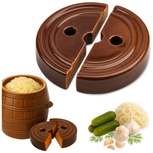- Ciężka ceramika, która dociśnie zawartość - Kamień dociskowy wykonany z masywnej kamionki zapewnia optymalny nacisk, utrzymując warzywa w idealnej pozycji przez cały czas fermentacji.