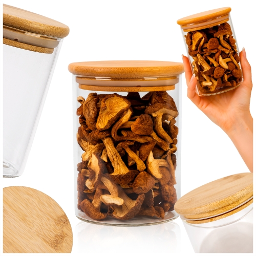 Pojemnik szklany 420ml do przechowywania żywności z drewnianą przykrywką