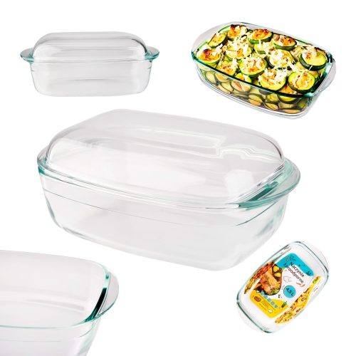 NACZYNIE ŻAROODPORNE 4,5 L Z POKRYWĄ - SZKLANA, PROSTOKĄTNA BRYTFANKA DO PIECZENIA