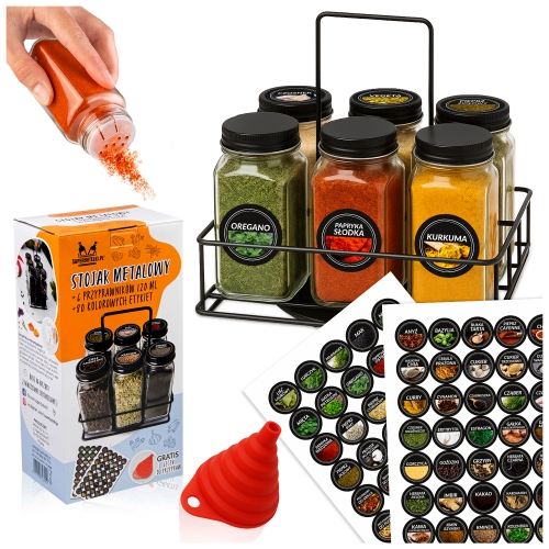 Przyprawnik obrotowy stojak + 6x słoiczki na przyprawy + 80x naklejki + lejek GRATIS