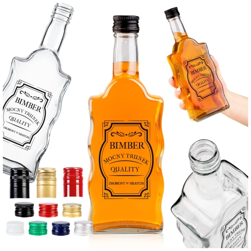 Zestaw 5 sztuk - Butelka FALA 500 ml z nadrukiem BIMBER na whisky wódkę bourbon bimber koniak nalewki